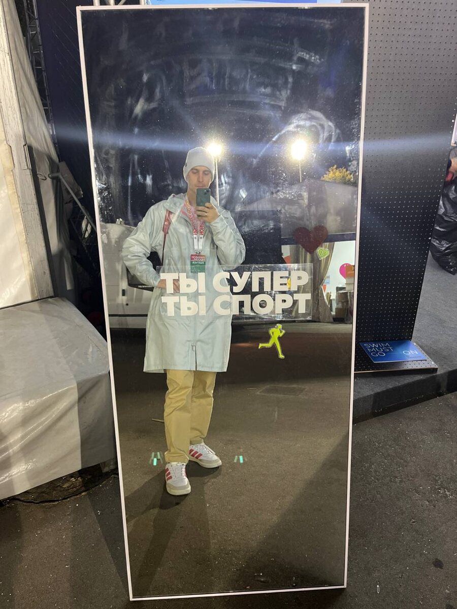 Зеркало, прошедшее экспо марафона и я, прошедший экспо. Не, ну номер на забег же я получал.