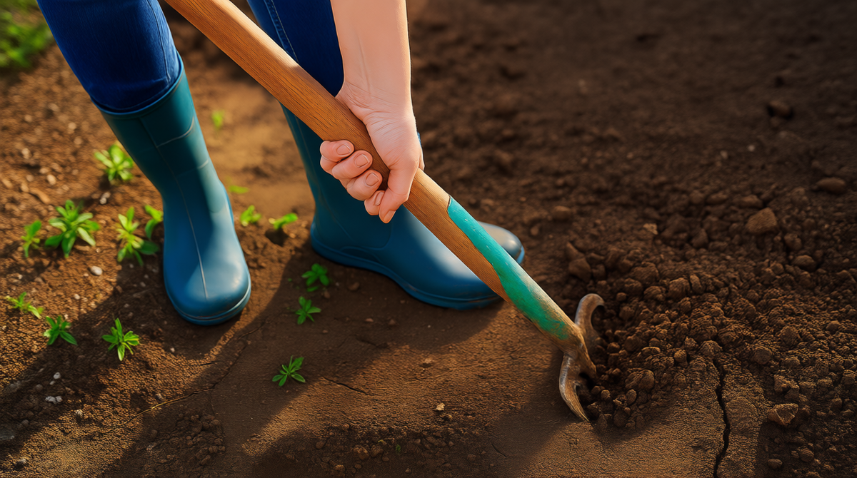 Как только собрал основной урожай и снял остатки растений, рыхлю лунку — не перекопка! Просто выбираю место под будущую рассаду, делаю углубление на 10–20 см.