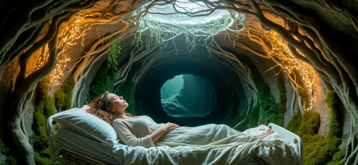 Она была в небольшой пещере, но это была не пещера в привычном понимании. Это была комната, выращенная из самой планеты. Стены, пол, потолок — всё было живым, дышащим, излучающим умиротворяющий свет.