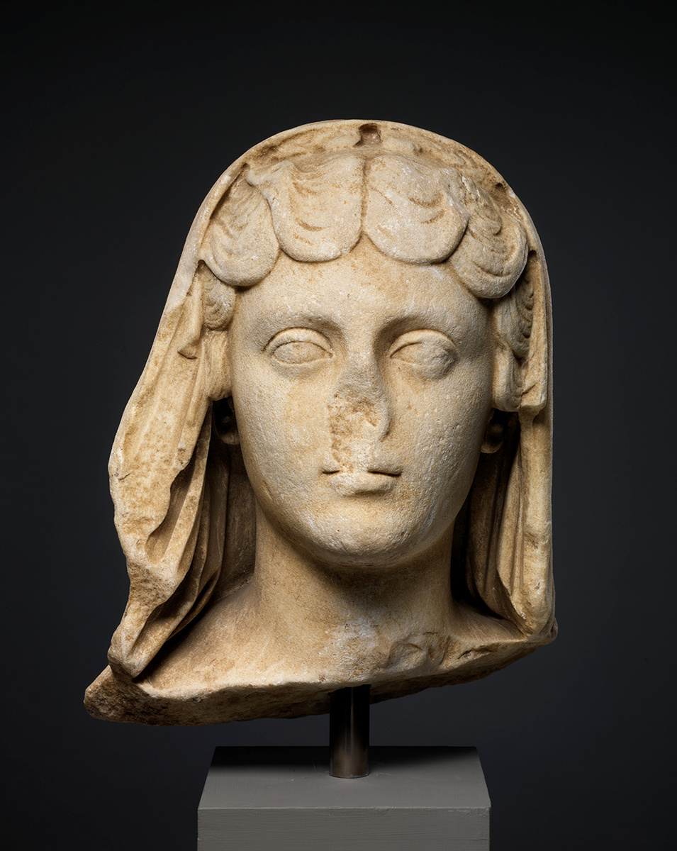 Портреты эпохи Антонинов часто характеризуются устремлённым вверх взглядом, тяжёлыми веками и общим ощущением спокойствия. В то время как женские изображения, датируемые периодом правления императора Адриана (117–138 гг.), продолжали более раннюю традицию сложных причёсок и приобрели черты сдержанного классицизма, портреты эпохи Антонинов отличаются более простыми причёсками и грацией. Это особенно характерно для произведений эпохи Марка Аврелия (161–180 гг.). Преданность императора стоической философии, выраженная в «Размышлениях», по-видимому, повлияла на самовосприятие римлян и на их увековечение памяти. Укладка волос женщины на этой скульптуре, образующая петлеобразные ряды, соответствует причёске Фаустины Младшей, жены Марка Аврелия. Преданная и энергичная жена, она родила императору тринадцать детей. Черты лица женщины в целом соответствуют скульптурным портретам Фаустины, но, возможно, эта работа изображает человека, сознательно подражавшего императрице. В таком случае порт
