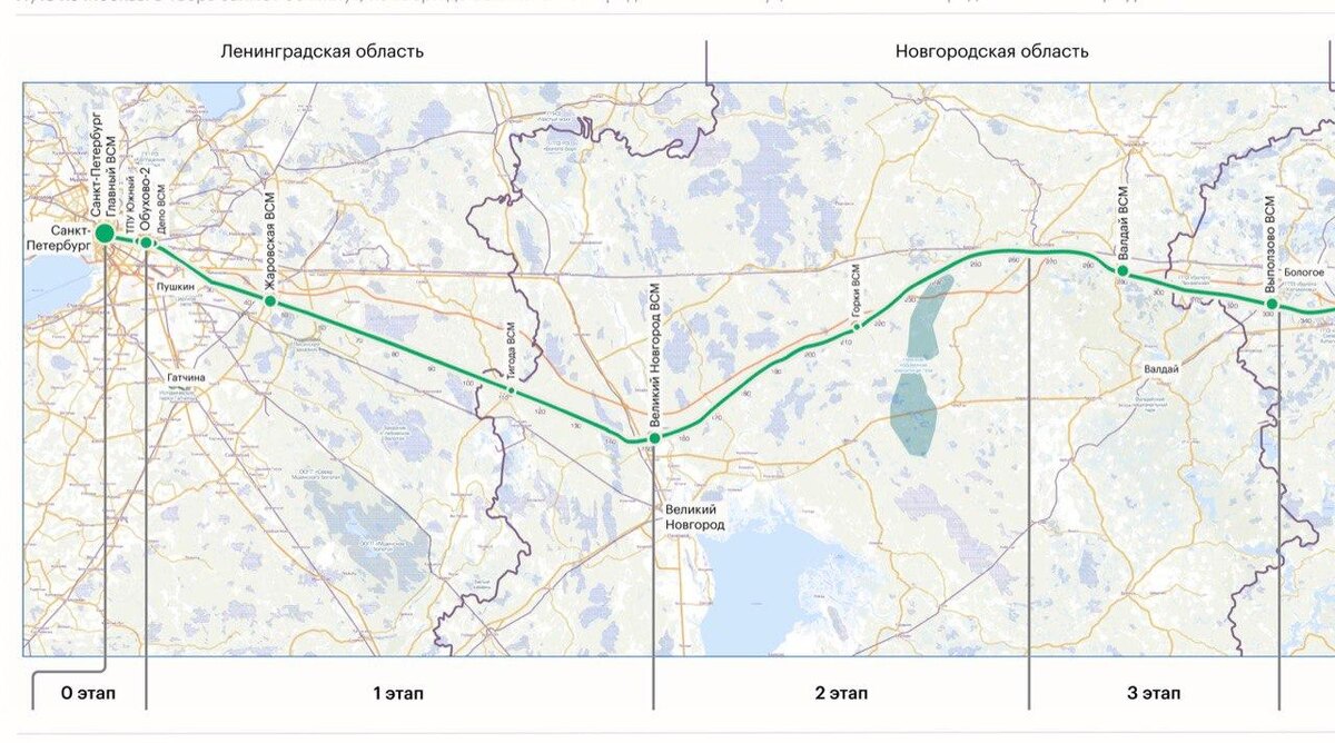 Маршрут ВСМ Москва-Петербург определен: на пути будет 16 станций
