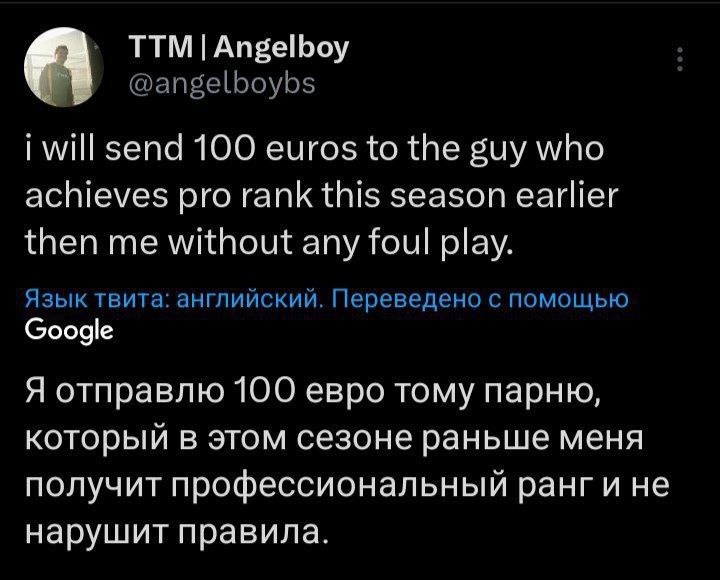 ⚡️ Челлендж от AngelBoy Ярослав снова начал пуш Pro-ранга, который он апает первым уже несколько сезонов подряд, но решил дать мотивацию другим игрокам. Он заплатит 100 евро тому, кто апнет максимальный ранг быстрее его без нарушений. ✅Новости по Clash Royale - ТЫК ✅Новости по Телеграмм подаркам, NFT - ТЫК Мир Supercell. Подписаться