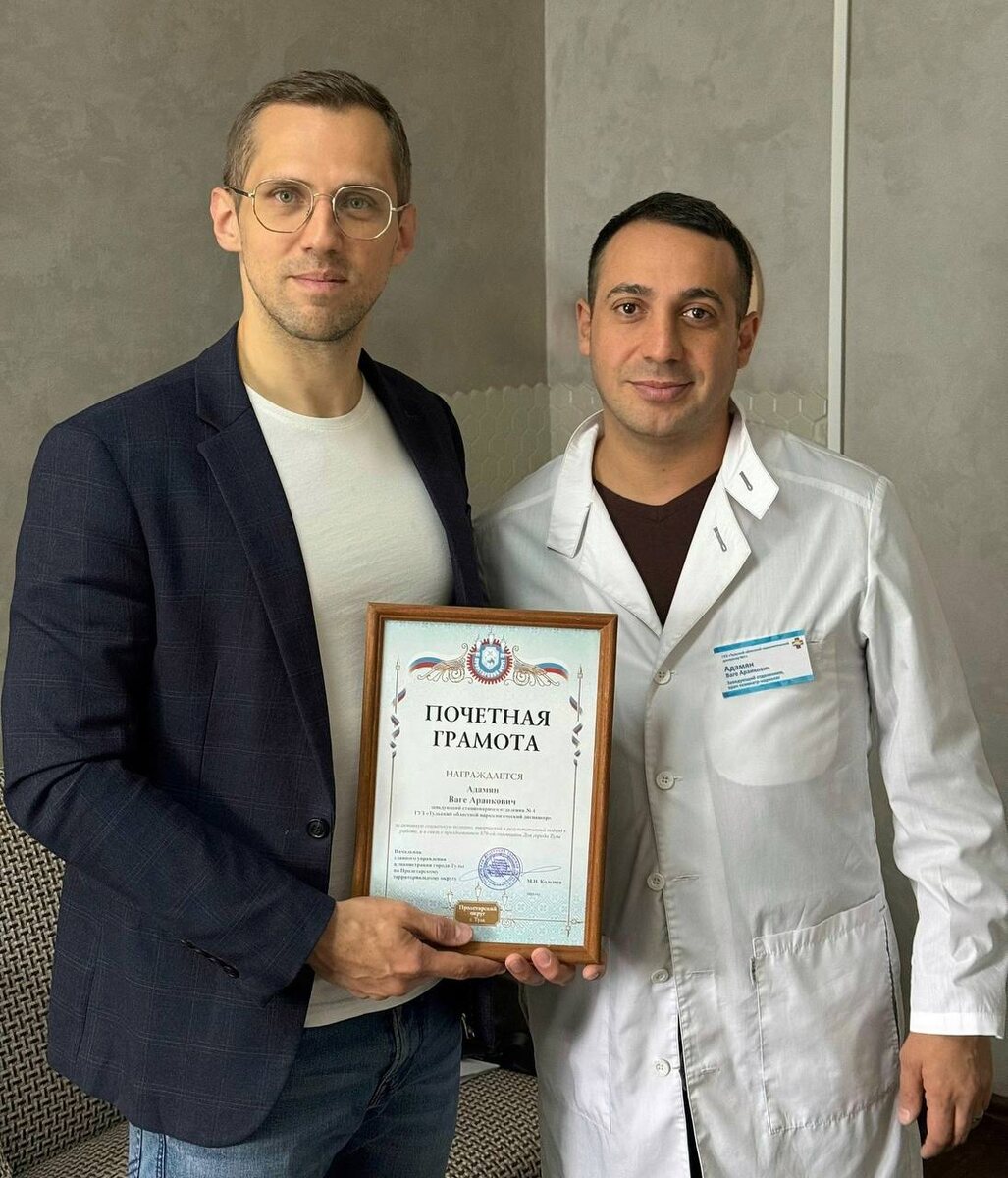 ⚡️Илья Киндеев вручил врачам Почетные грамоты Депутат ЛДПР Тульской областной думы Илья Киндеев вручил психиатру-наркологу стационарного наркологического отделения № 4 Ваге Адамяну и фельдшеру ГУЗ "Детская городская клиническая больница г. Тулы" Максиму Авдонину Почетные грамоты за самоотверженный труд «От всей души благодарю Вагу Адамяна и Максима Авдонина за их бескорыстное служение на благо туляков. Пусть это звучит пафосно, но иначе и не скажешь: их труд — это здоровье и будущее сотен семей», — сказал депутат.