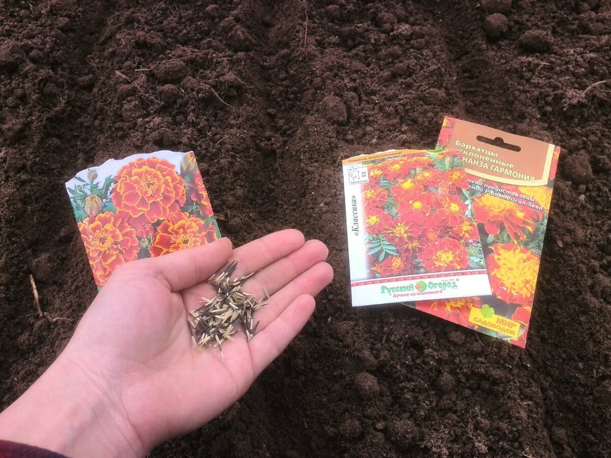 Лучшее время для посева бархатцев под зиму — конец октября или начало ноября, когда почва слегка подмёрзнет, но ещё не покрыта снегом. Это предотвратит преждевременное прорастание.