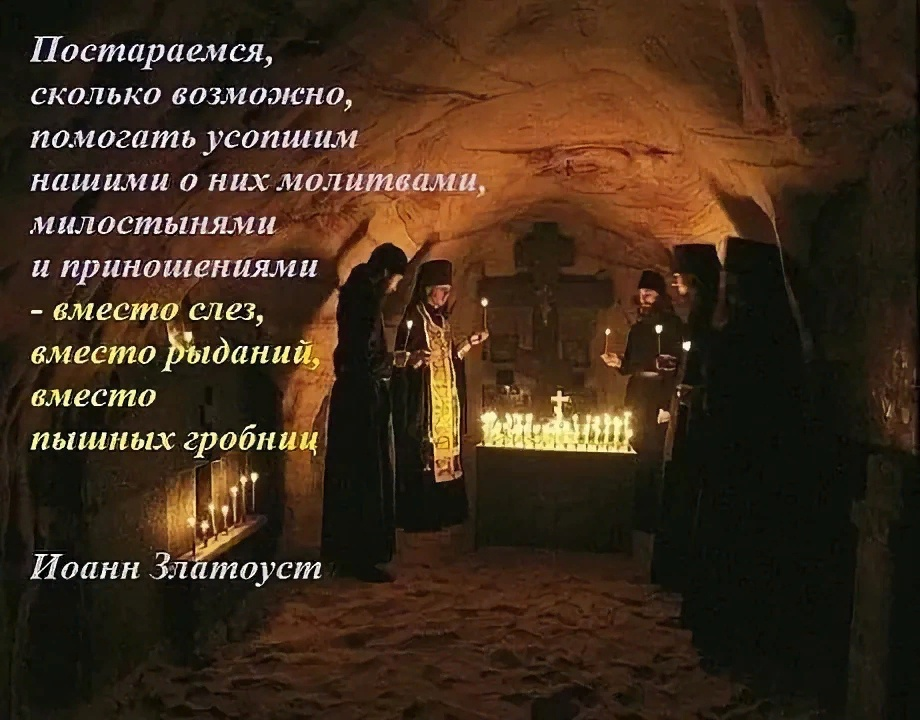 Смерть не для других, а для всех. И она не за горами, а за плечами. Души пищи хотят. Дадим же мы им хлебы - заупокойных пений, а они нам, и Сам Господь с ними - милость подаст.