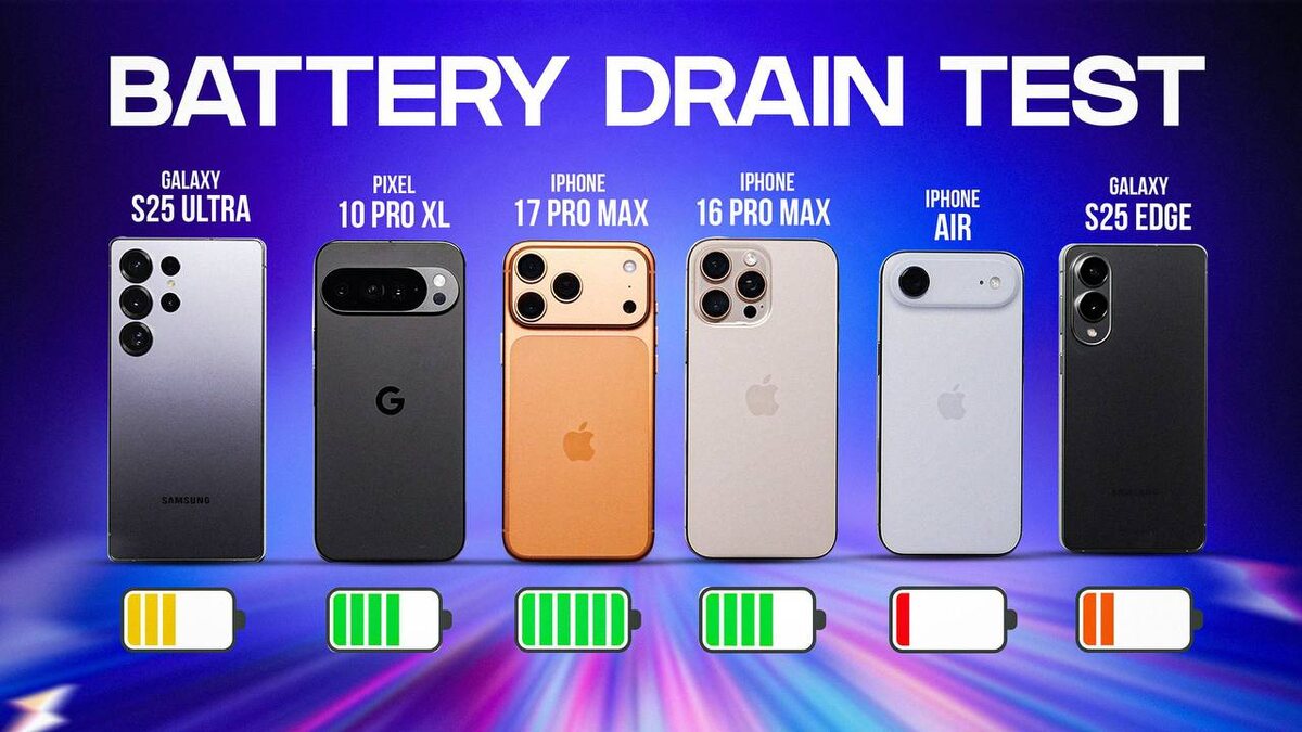 Отличный тест времени работы iPhone 17 Pro Max vs iPhone Air vs 10 Pro XL/S25 Ultra/S25 Edge/16 Pro провел «Lover of tech