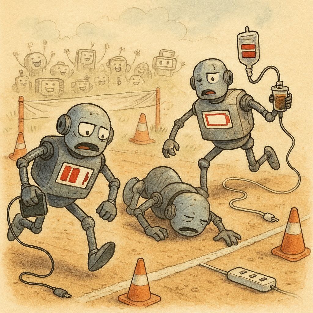 Напишите микро-рассказ из 7 слов или меньше (или больше), на тему "Чемпионат по бегу с низким зарядом".