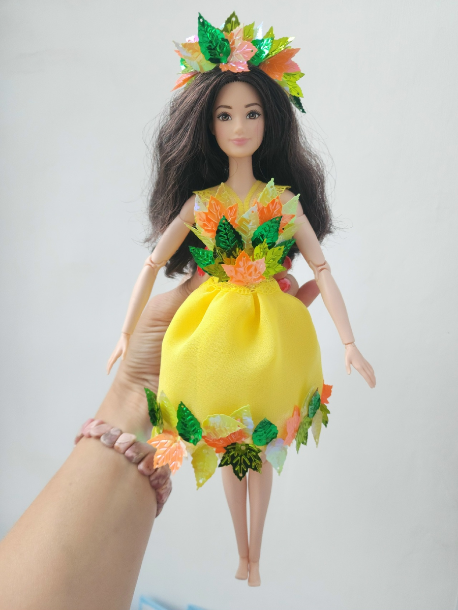 Здравствуйте. Сегодня статья совершенно спонтанная. Намеревалась писать о частном музее кукол в Костроме, даже начала статью, но что-то пошло не так... Или наоборот, пошло как надо. Последние несколько дней у меня по-настоящему много работы, заканчивающейся поздно вечером или даже ночью. Какое уж тут вдохновение... Но эта загруженность, неожиданно, напомнила почему я вообще "ушла в куклы". Именно, чтобы переключиться, заняться чем-то отличным от обычной деятельности. Вчера был выходной и я решила просто отдыхать. Как говорится, ничего не предвещало. Просто на столе осталась проволока, которой кукла крепится к упаковке. Даже не знаю, от кого она. Не выбросила вовремя, и она случайно попала в руки, пока я выгружала фото из Костромы с телефона в компьютер. Машинально скрутила в колечко, так же машинально надела его на голову новенькой куколки, как веночек. И понеслось... За окном серое небо и дождик, а мне захотелось яркой осени, радостной. Наряд сделала за 20 минут. Именно сделала. Не с