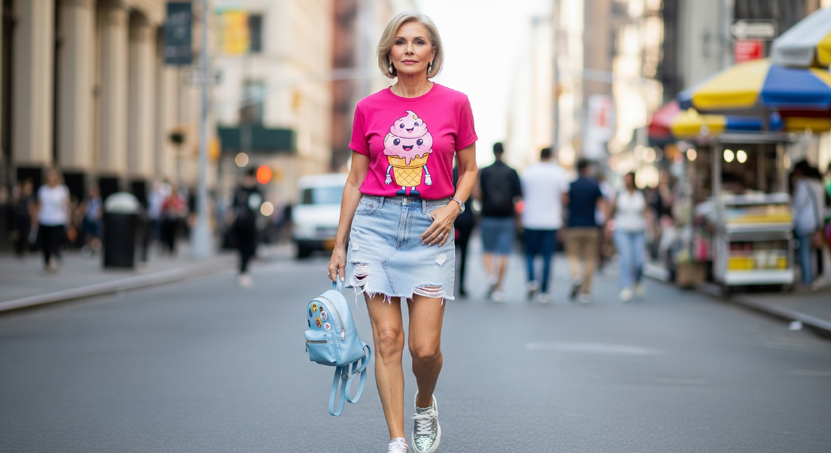 В прошлый раз мы говорили о "гардеробе без фундамента". Сегодня мы разберем вторую большую ошибку, которая исходит не из шкафа, а из головы. Это "Погоня за молодостью". Желание выглядеть свежо и энергично — абсолютно нормально. Но многие женщины в погоне за этим совершают фатальный промах: они начинают одеваться в откровенно молодежную, подростковую одежду. Футболки с мультяшными принтами, джинсы со стразами и рваными дырами, инфантильные розовые кофточки. Кажется, что такая одежда должна "сбросить" десяток лет. Но происходит прямо противоположное. Вот главный секрет, о котором молчат стилисты. Когда взрослая, состоявшаяся женщина с жизненным опытом, со сложившимися чертами лица, надевает футболку 18-летней студентки, возникает резкий диссонанс. Эта "детская" одежда не омолаживает вас. Наоборот, на контрасте с вашим лицом, кожей, фигурой, она беспощадно подчеркивает ваш реальный возраст. Окружающие подсознательно видят не "молодую девушку", а "взрослую женщину, которая очень старается