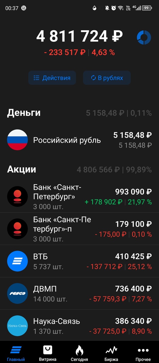 Рассказываю о своем инвестиционном портфеле российских акций (и теперь облигаций), его прошлом, настоящем и будущем, а также показываю картинки с котиками, куда же без них :) Продолжение. Предыдущая часть тут. И прежде чем продолжить Предупреждение! Всё что написано выше и ниже не является инвестиционной рекомендацией. Как-то так. Подошла к завершению 201я публичная неделя моего инвестиционного портфеля российских акций (только акции, только хардкор). Портфель за неделю подрастерял еще 253 тыщи, как индекс Мосбиржи, закрывшийся в пятницу вечером на отметке 2748,06. По текущим делам в портфеле. План сработал, можно сказать. В четверг вечером выскочило оповещение приложения ВТБ, что цена акций ДВМП достигла 58 рублей. Пока увидела, пока зашла – цена уже переползла за 57 рублей. Ну тем лучше, подумала я, и скинув весь набор LQDT закупила 14 тыс. акций ДВМП со средней 56,73 руб. Почти, как и планировала, но несколько дешевле, что дало скажем так еще +15 тыс. свободных рублей в дополнени