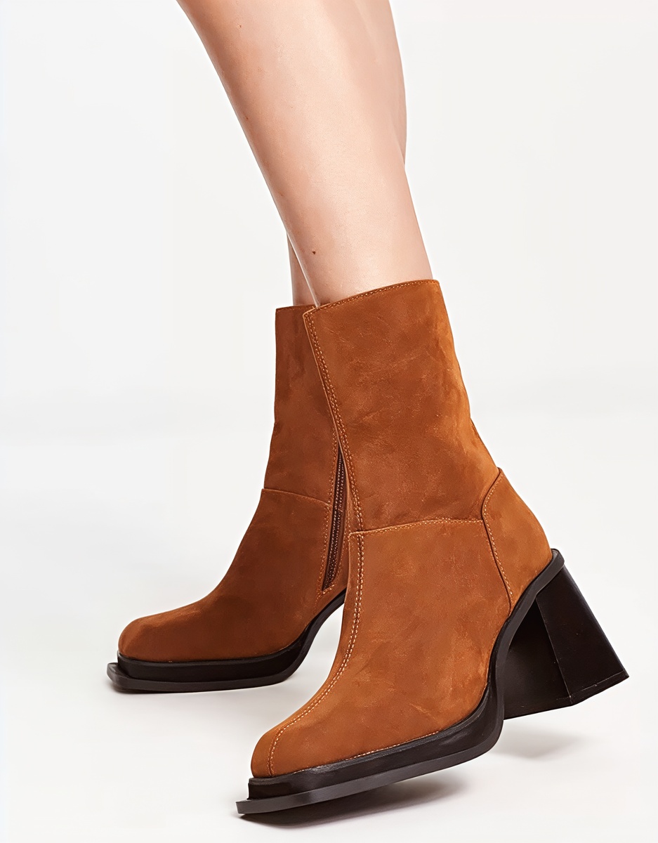 Ботильоны на устойчивом каблуке переживают настоящее возрождение — только теперь они выглядят гораздо интереснее. В этом сезоне появились варианты с квадратными мысками, которые придают образу современную архитектурность. Особенно эффектно смотрятся модели из замши глубокого коричневого оттенка — они автоматически делают любой комплект дороже на вид.