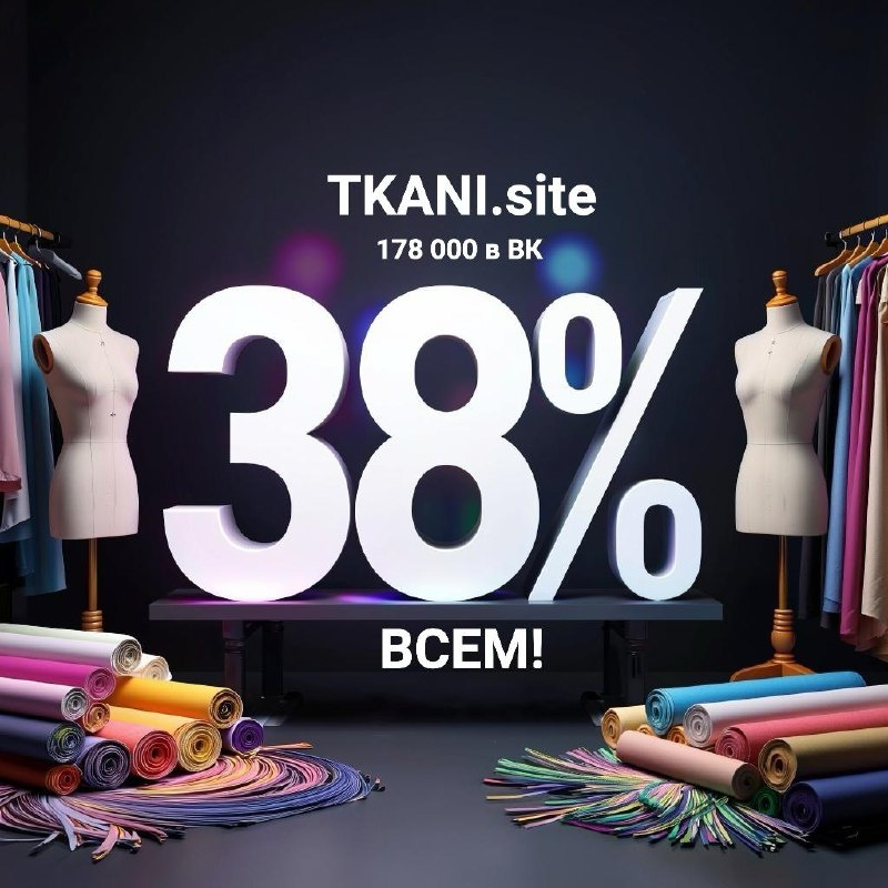 Нас в группе ВК стало 178 тысяч. На днях. Но не пропускать же день сока! А вот сегодня отмечаем очередной юбилей вашей любимой группы. Уже можно поздравлять. tkani.site Купон: 38VK178 Скидка 38% Купон работает до 09:00 (мск) 22 сентября Купон вводите в специальное поле в корзине, когда оформляете заказ. Обязательно нажмите "Сохранить" рядом и проверьте, что купон применился. ВАЖНО! Если в корзине есть товары со скидкой, то поле для купона не появится! Оформляйте товары со скидкой отдельно А ещё можете поделиться этим со всеми и тогда нас станет еще больше. А это означает, что и тканей станет больше и интереснее