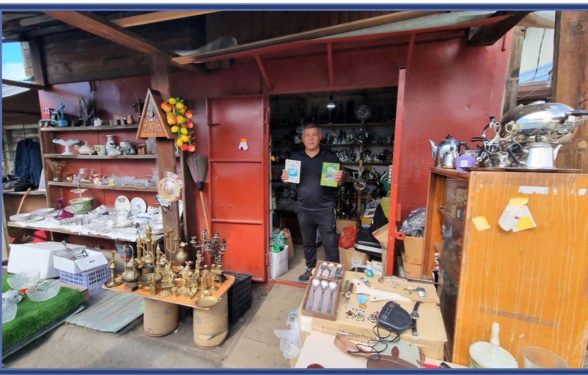 ...Уходя, он заглянул в сараюшку, похожую на курятник, к Лехе-барыге. Тот торговал чем попало, что под руку подвернется, но дела у него, судя по развалу всякой всячины, шли неплохо. Он долго возюкался с настольными часами, пытаясь их завести, дабы впарить Кеше как раритет. Те тикали, но стрелки стояли на месте. Затем они обговорили вон тот знак, что на фото, слева от метлы, то есть герб СССР, некогда красовавшийся на лобном месте тепловоза. Алексей и его попытался толкнуть Палычу, типа почти задаром, но смышленый Листозадов залез в интернет и узнал конкурентную стоимость дюралевой бирки. Оказывается, их много «наотрывали», то есть «наоткручивали» с вагонов списанных поездов, и цена низка на сегодняшний день. Нелепая покупка Разговаривая о том о сем, Кеша едва удерживал под мышкой брыкающуюся, пытающуюся вырваться на волю, громко кудахтающую, купленную только что «не знаю зачем и для чего» пеструю глупую несушку. Он не знал также, для чего ему нужен и герб, о котором попытался поторго