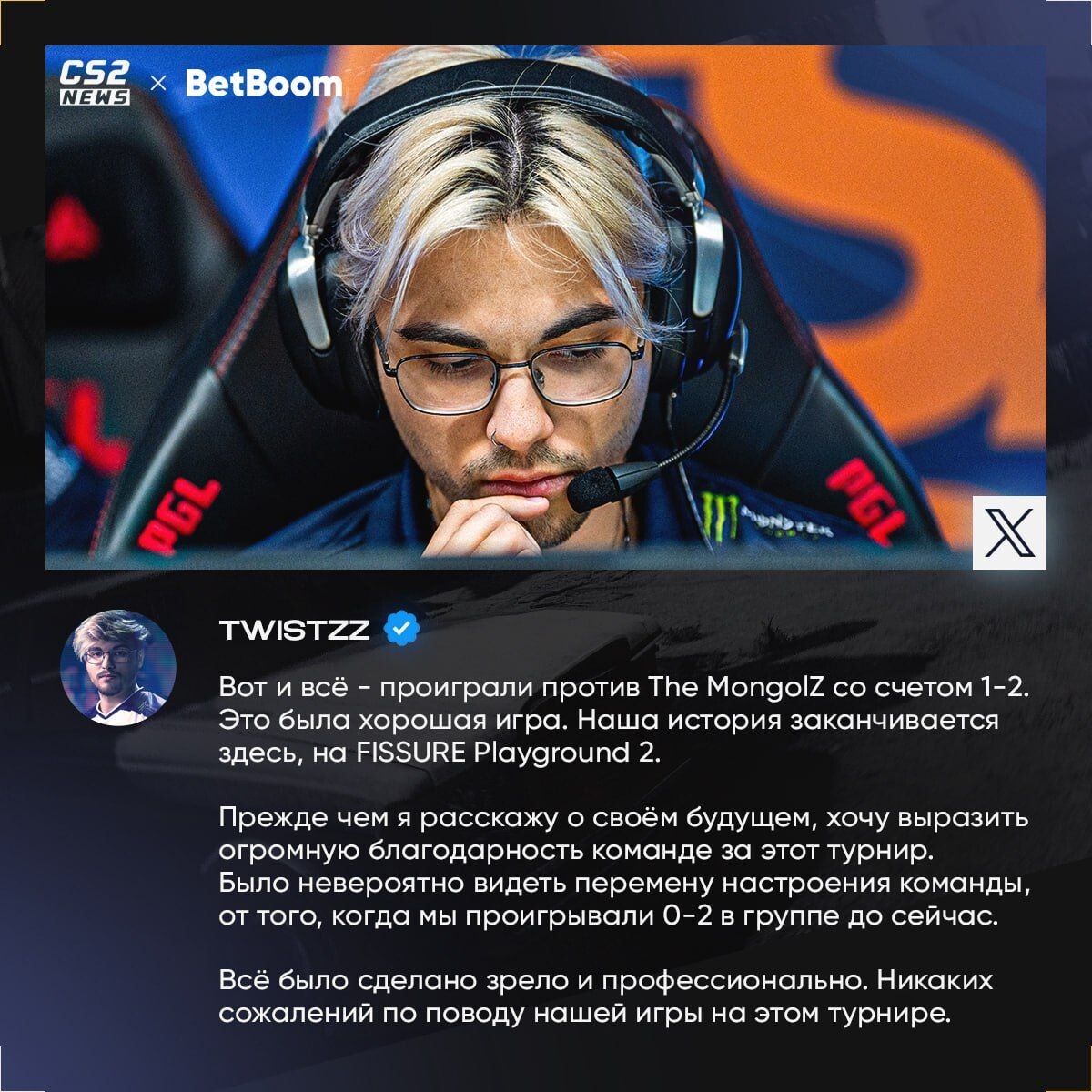 Twistzz отметил, что команда продемонстрировала высокий уровень профессионализма и мастерства, несмотря на то, что это был их последний турнир вместе. Он подчеркнул, что каждый игрок вложил максимум усилий, чтобы показать достойную игру.