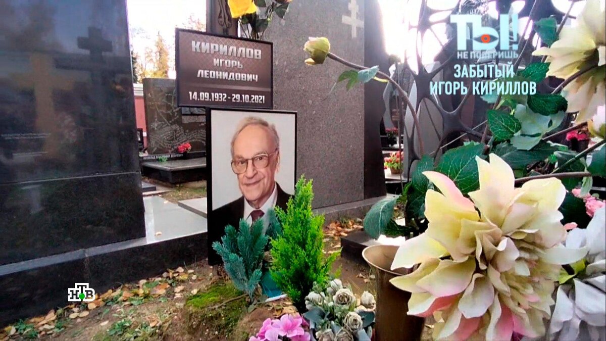[ Смотреть видео на сайте НТВ ] Диктор Евгений Кочергин возмущен до глубины души. Его учитель и коллега ушел из жизни четыре года назад, а памятника до сих пор нет. Ответственная за могилу — вдова Игоря Кириллова Татьяна. Евгений Кочергин: «Она работала продавцом в продуктовой палатке рядом с домом, в котором Кириллов жил. Он пришел к ней и спросил, есть ли макароны и как их готовить. Она пришла, сварила ему. А потом он говорит: „Слушай, оставайся“. С ней он воспрянул духом и телом. Ей повезло. Она получила много, конечно. Она получила квартиру, она получила статус». Два года назад вдова Игоря Кириллова заверила, что занимается памятником. Татьяна Кириллова, вдова Игоря Кириллова: «Он в проекте. Надеемся, что в ближайшее время всё будет установлено». Может быть, в этом году есть подвижки? Вот что ответила вдова Кириллова по телефону. Татьяна Кириллова: «Всё в процессе». Евгений Кочергин не исключает, что у вдовы нет денег. Евгений Кочергин: «Она работает, по-моему, в ДЕЗе, ЖЭКе. Живет