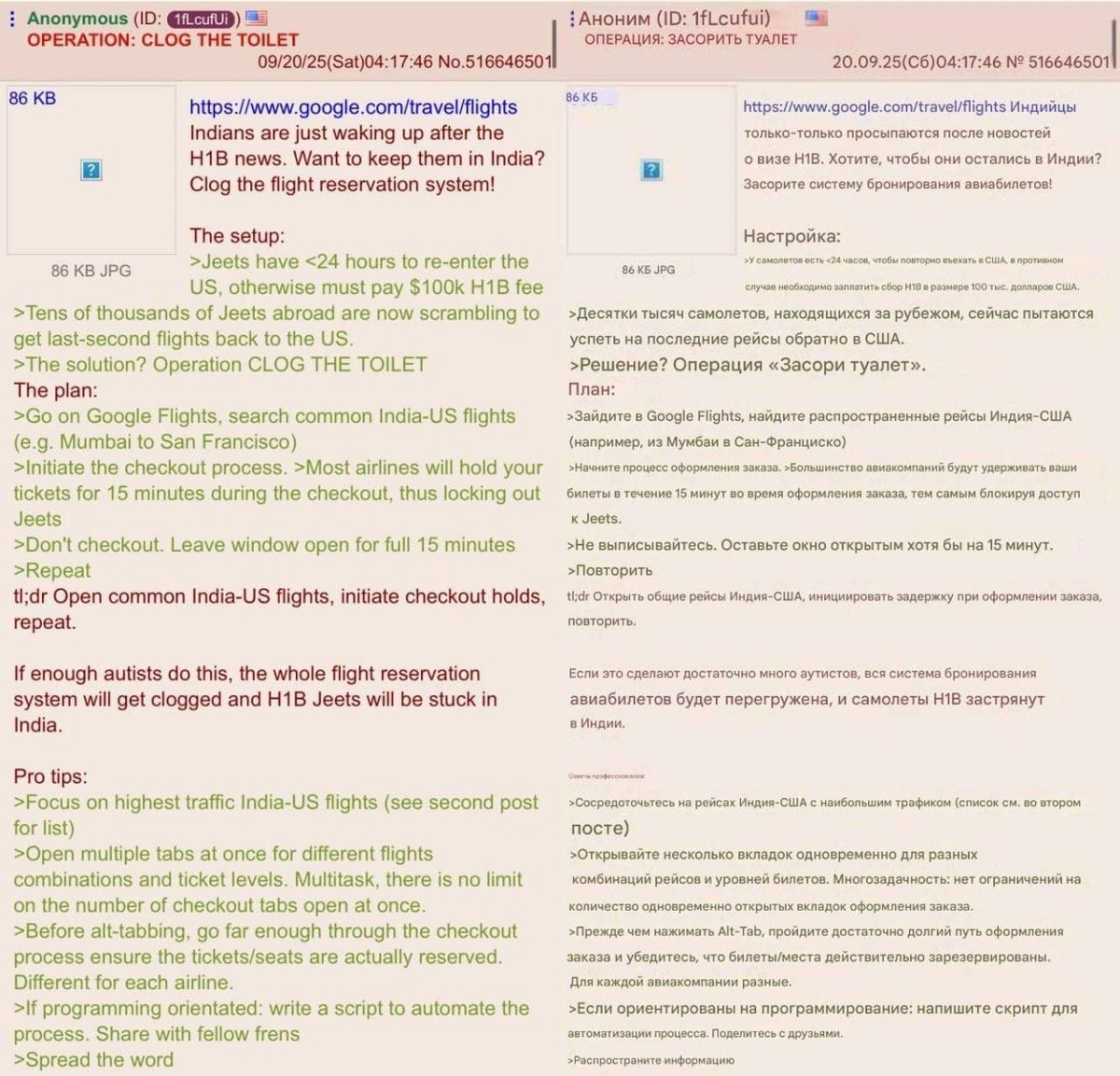 Привет, друзья! Сегодня в США произошло значимое событие, которое может кардинально изменить рынок труда в стране. Дональд Трамп подписал указ, увеличивающий стоимость рабочей визы для иностранцев в 100 раз — с 1000 долларов до 100 000 долларов. Новое правило вступит в силу 21 сентября 2025 года. Крупные корпорации уже призвали своих сотрудников срочно вернуться в США, пока не вступил в силу новый сбор. Айтишники из Индии и Китая, которые в основном пользуются этой визой, должны подать заявление в ближайшие сутки. Ситуация на рынке труда обострилась настолько, что пользователи американских форумов начали специальную операцию против айтишников из Индии под названием «Засорить туалет». Они массово бронируют авиабилеты из Индии в США на ближайшие сутки, чтобы заблокировать поток индусов и китайцев в страну. В результате цены на перелёт взлетели до 6000 долларов за билет. Индусы в панике пытаются улететь и не хотят оставаться на родине. Как это решение повлияет на рынок труда в США и какие