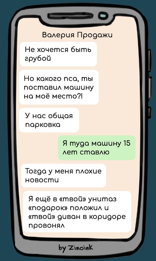Коллеги – как семья, мы проводим с ними большую часть своей жизни и их мы тоже не выбираем). И очень плохо, когда семья эта оказывается неблагополучной. Сегодня я собрал 7 смешных переписок с токсичными коллегами, в которых они бесят через экран. Уверен, они тебе понравятся. Ставь лайк в конце и не забывай, что ещё больше классных шуток без рекламы и цензуры ждут тебя с подпиской-премиум. Прекрасно понимаю людей, которые бесятся, когда коллеги берут их чашку или йогурт из холодильника! Но кажется героиня следующей переписки перегнула палку. Иногда абсурдные требования начальства просто выводят из себя! Увы, для героя следующей переписки – это точно не тот случай). Всем известно, что с бухгалтерами в компаниях надо дружить! Но если эти хладнокровные не идут на человеческий контакт – придется решать дело по-другому. Подковерные игры в офисе – дело нередкое. И все же очень неприятно, когда коллеги вставляют тебе палки в колеса. Вашему вниманию представляется одна из таких игр! В любом раб
