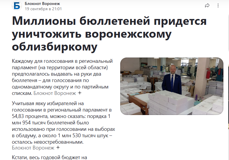 И прямо решительно ничего с этим сделать невозможно. А что, если, смотрите, не заранее печатать бюллетени, а по факту явки? А? Нет, никак невозможно? Неужели эта светлая (или крамольная?) мысль только ко мне в голову пришла?