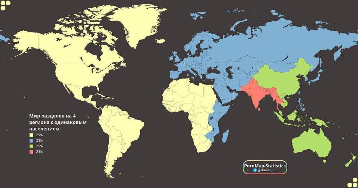 Разделение мира на 4 части с равным количеством населения PornMap - Statistics