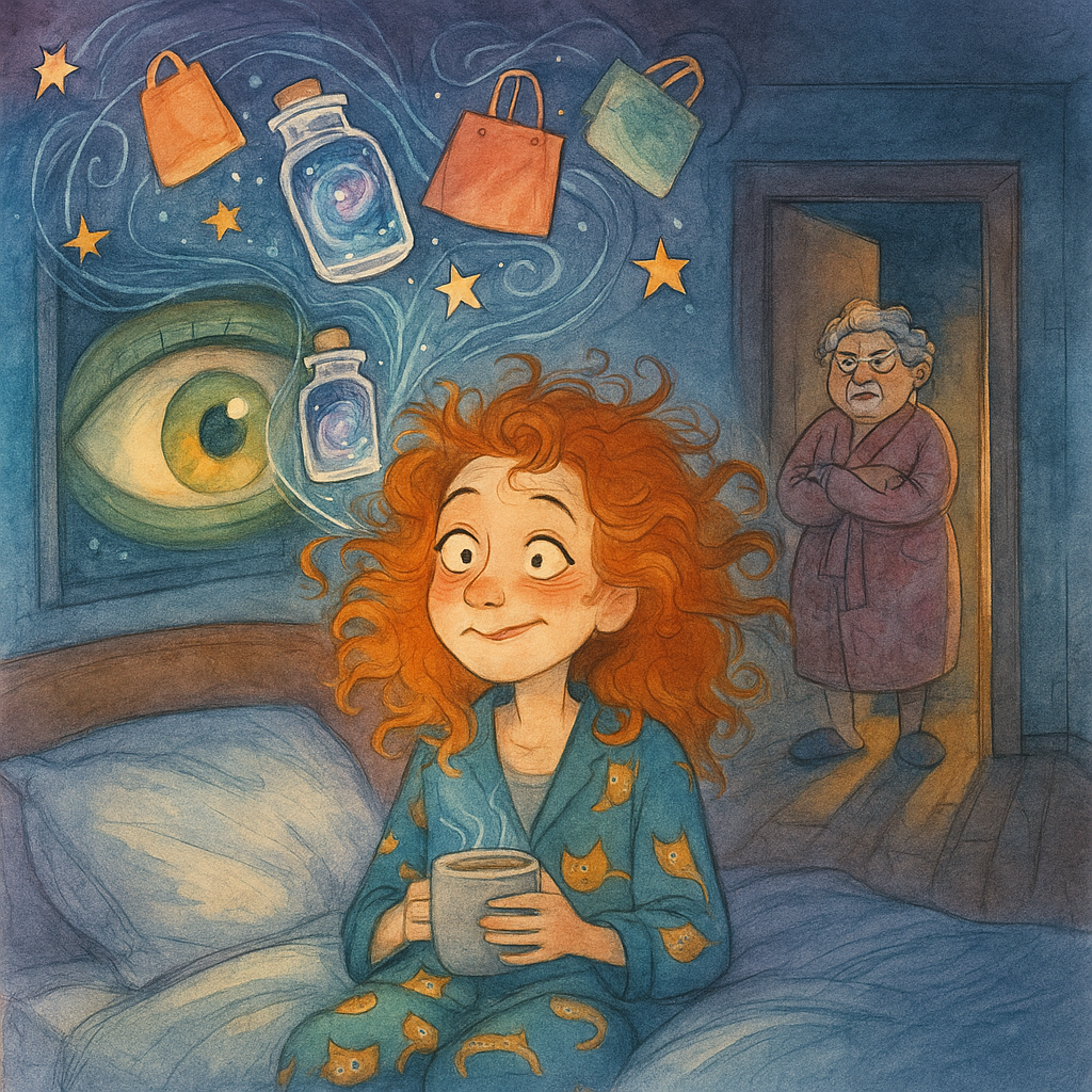 Спать я, конечно, легла, но мозг решил: «А зачем нам отдыхать, когда есть целый репертуар? И ведь вполне ожидаемо было, что ночью мозг соберет всех своих «жильцов» на шумное обсуждение важных дневных вопросов. Ну и понеслось. Сначала снились звёзды. Не небесные, а какие-то слишком близкие, почти настольные. Будто открываешь кухонный шкафчик — а там галактика в банке. И я думаю во сне: «Интересно, если эту банку уронить, это будет конец света или просто генеральная уборка с ведром космоса?...» Потом началась турбулентность. Меня куда-то тащило, мчало, кружило — и вот лечу уже, как пакет из «Магнита», поймавший философский ветер перемен. Думаю: «Куда парковаться? На балкон судьбы или сразу в кастрюлю с мечтами?». Неожиданно картинка меняется — и тут на меня таращится глаз. Огромный. Вселенский. Я аж поперхнулась во сне: — Ну что, глазное министерство пришло с проверкой? Может, у меня радужка не по ГОСТу? Или вы подозреваете меня в контрабанде ресниц? Он не спрашивал словами, но я слышала