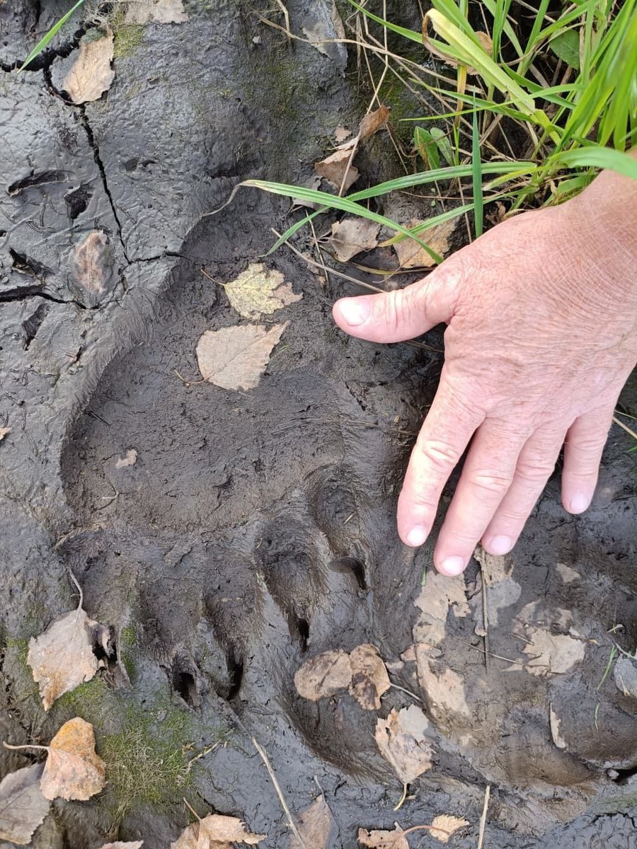 В лесах Балтачевского района вновь активизировались медведи 🐻. Жители деревень, расположенных в окрестностях лесов 🌲, чаще сталкиваются с этими лесными обитателями. Осенью 🍂, когда природа щедро одаривает леса грибами и ягодами 🍄🍅, люди отправляются в чащу за дарами природы. Однако именно в это время медведи, готовясь к зимней спячке 😴, усиленно питаются и нередко выходят к людям в поисках пищи. 20 сентября жители деревни Кунтугушево, собирая калину в лесу 🍓, обнаружили на земле следы медведя 🐾. Они сразу же поделились находкой в местном чате в мессенджере 💬, прикрепив фотографии следов 🖼️. Очевидцы заметили, что следы похожи на стопу человека 👣 и сравнили с ладонью взрослого человека 🤲, что свидетельствует о присутствии крупной особи 💪. "Кто-то в лесу босиком ходил," — пошутили в чате 😄, но за шуткой скрывается тревога.🦌 Грозные животные, такие как медведи 🐻, могут стать опасными 😠, если их спровоцировать ⚠️. Поэтому каждый должен помнить о правилах поведения в лесу ?