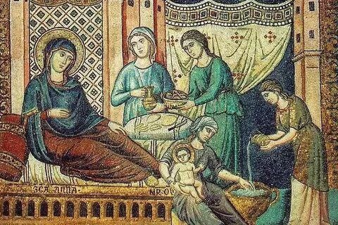 Велича́ем Тя, Пресвята́я Де́во, и чтим святы́х Твои́х роди́телей, и всесла́вное сла́вим Рождество́ Твое́.
