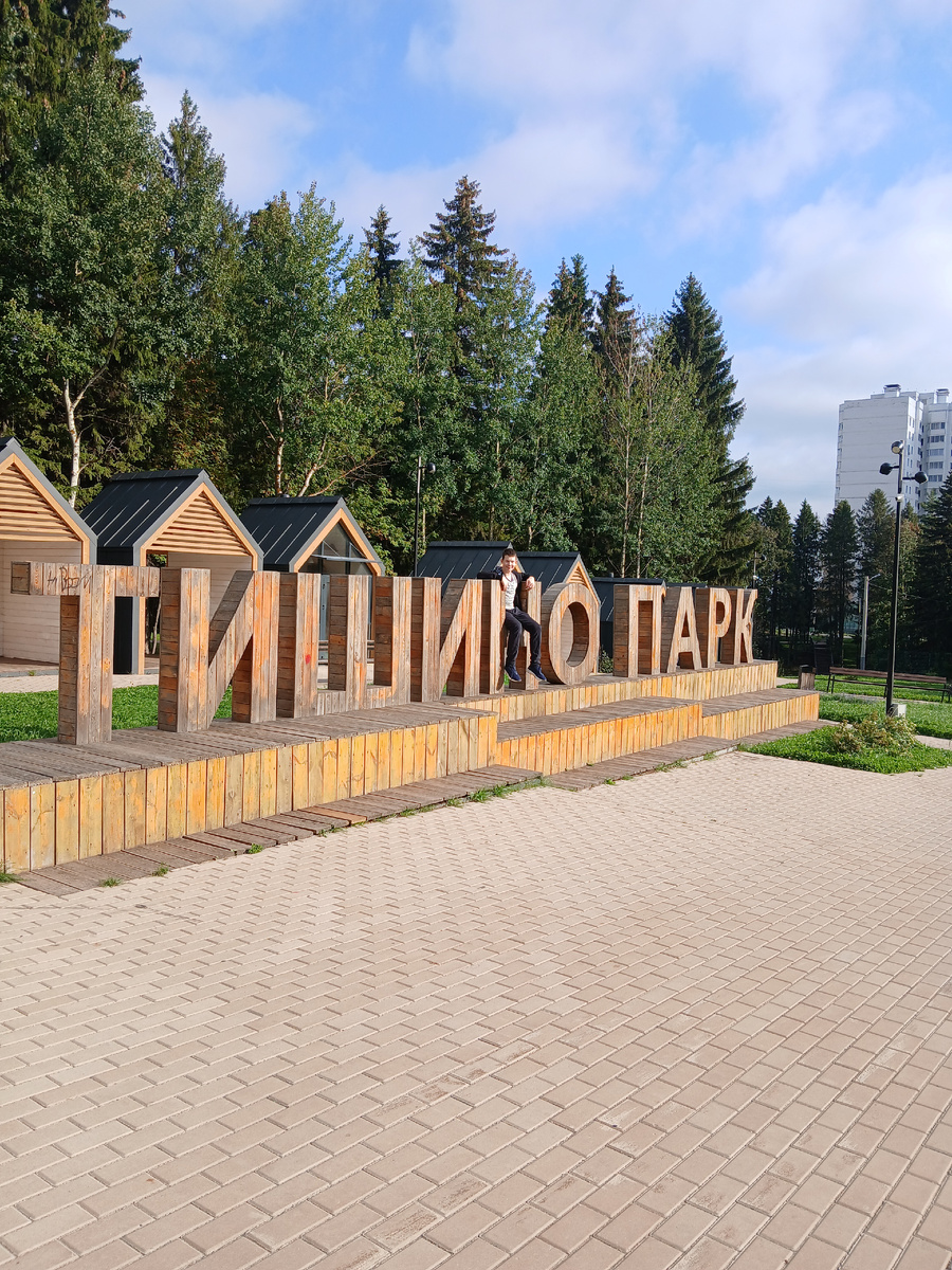 В новом микрорайоне города есть также уголок природы, помогающий жителям расслабиться, отдохнуть, провести время с пользой для здоровья, прогуляться и подышать свежим воздухом. Мы, конечно, не могли обойти стороной это место, ведь буквально еще пару лет назад это был заросший деревьями овраг. С улицы увидели большие буквы «Тишино парк», которые встречают на входе. Мой Малой сразу примостился на одной из них, пришлось буквы сфотографировать вместе с ним. Конечно, классно фотографироваться на фоне букв, и они как композиция определенно заслуживают внимания. Пришлось Малому сделать небольшое внушение, но Малой возразил, сказав, что эти буквы выдержат даже бегемота. На схеме парка представлена вся информация о парке, правила пребывания и номера горячих телефонов. В парке оставлено уникальное природное пространство, состоящее из деревьев, спусков и подъемов. Для удобства передвижения везде установлены лесенки и дорожки из деревянного настила. Прошли мимо сооружения для зимнего спуска и стор