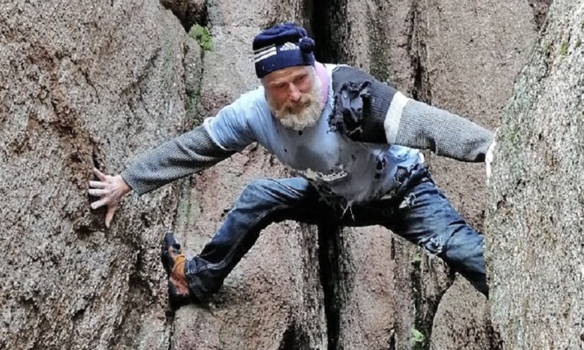 Дед-паук: 64-летний скалолаз спускается с обрыва вниз головой