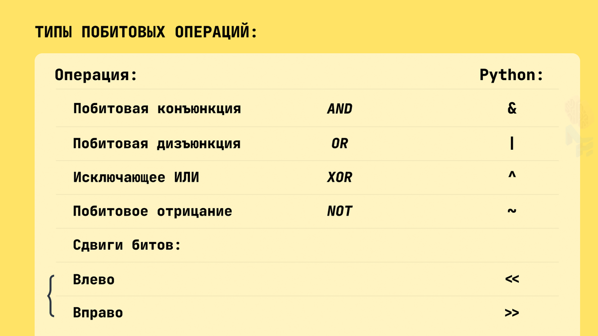 - Результат побитовой конъюнкции в Python — всегда целое число (int) ⤵