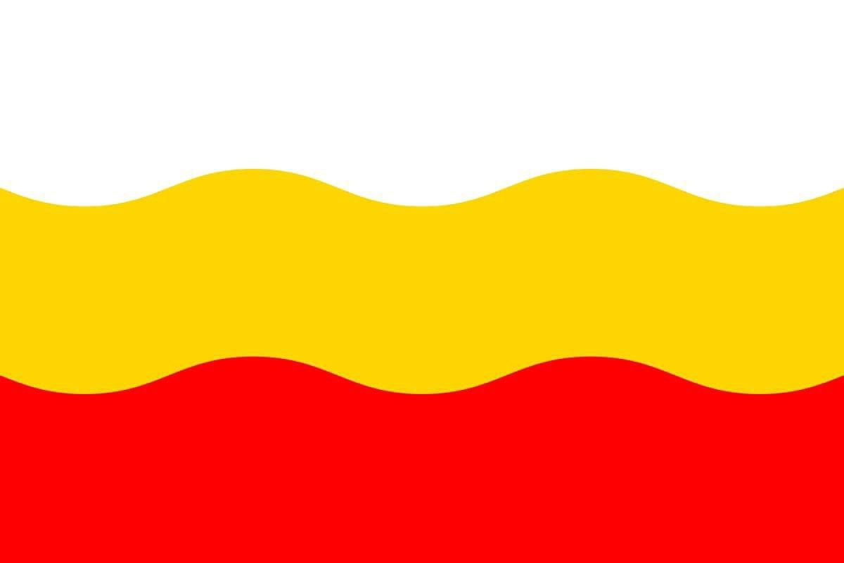 Флаг чешского города Дечин — один из немногих флагов с волнистыми, а не прямыми полосами.