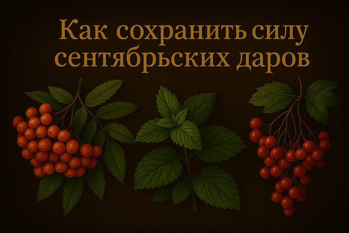 Собранные в сентябре травы, ягоды и листья несут особую энергетику — это плоды уходящего лета, напитанные солнцем и мудростью осени, они помогают мягко отпускать старое и готовиться у новому. Правильная заготовка важна не только для сохранения аромата и пользы, но и для того, чтобы сила растений раскрылась в обрядах, свечах, амулетах и оберегах. 🌿 Как сушить травы и листья Срезанные веточки связывайте в маленькие пучки и подвешивайте в тёплом, сухом и затемнённом месте. ❗️Избегайте прямых солнечных лучей — они «выжигают» магическую силу растения. Когда листья станут ломкими, аккуратно сложите их в тканевые мешочки или стеклянные банки. 🍇 Как заготавливать ягоды Ягоды, собранные в сентябре (рябина, шиповник, калина), можно сушить в духовке при минимальной температуре или на решётке в проветриваемом помещении. Важно сушить медленно, чтобы сохранить их обережную силу. Хранить лучше в холщовых мешочках или банках с крышкой, добавив туда лавровый лист или зёрна риса — для защиты