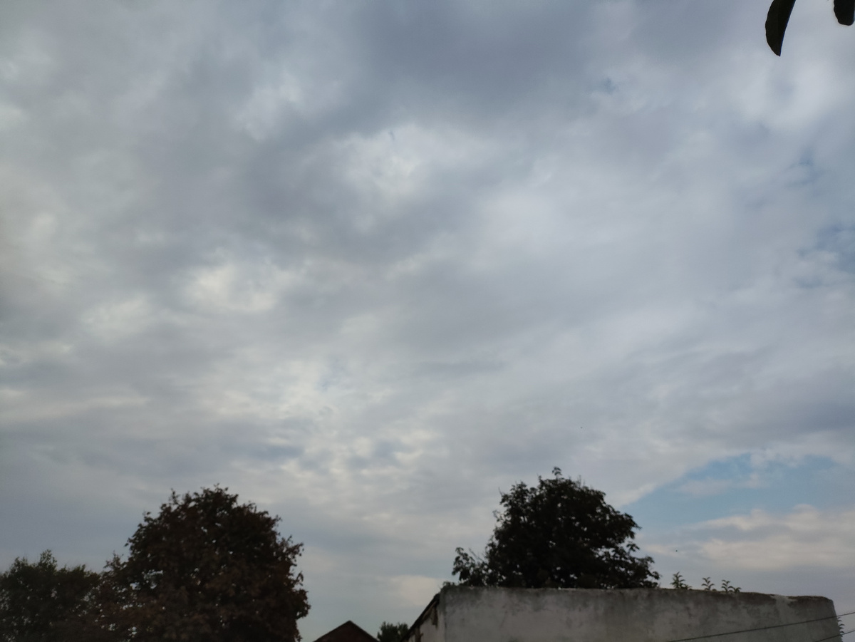 Да, ещё с утра на обходе территории любовалась местами темным, местами голубым небом и вроде как дождевыми тучами.