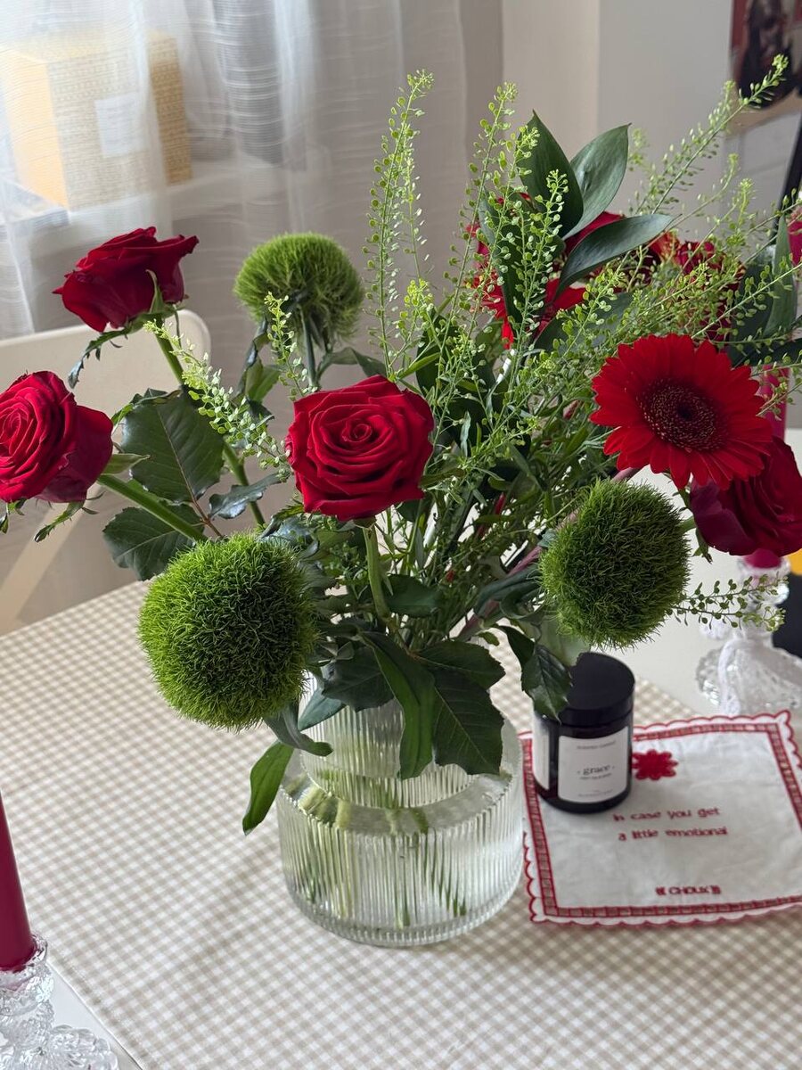 🌸 #моицветы решила делать подборки со своими букетами, а то все хранится в фотопленке. возможно, вас вдохновлю на букетики для себя или в подарок. у меня рядом с домом цветочный, туда привозят иногда хороший выбор, ну а когда совсем ничего интересного нет, я делаю моно-букеты! сегодня у нас красно-зеленое настроение! мне через неделю улетать в Сочи, поэтому этот букет как раз сделает свое дело за неделю))