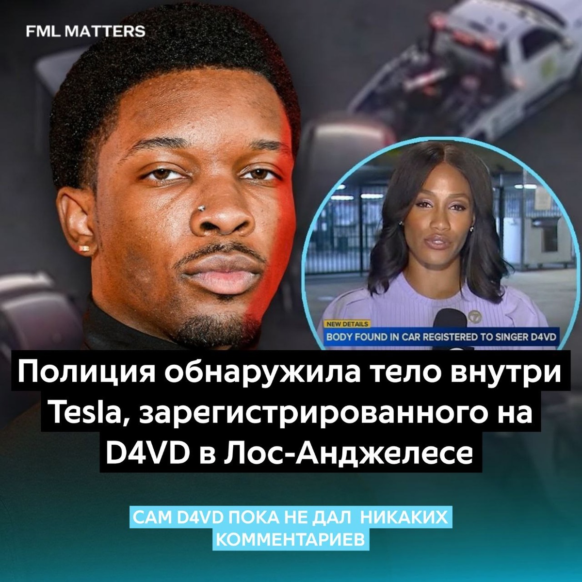 ❗️ПОЛИЦИЯ ОБНАРУЖИЛА РАЗЛАГАЮЩИЕСЯ ТЕЛО В МАШИНЕ D4VD! Полиция Лос-Анджелеса начала расследование после обнаружения человеческого тела в багажнике Tesla, зарегистрированной на D4vd. Автомобиль находился на стоянке в Голливуде несколько дней, и только в понедельник, после жалоб на странный запах, офицеры провели осмотр и обнаружили тело в пакете в багажнике автомобиля Сам D4vd в настоящее время гастролирует с туром; он и его представители пока не давали комментариев по поводу инцидента 💀 FML MATTERS