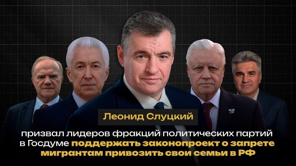 ❗Леонид Слуцкий отправил руководителям фракций политических партий в Госдуме обращение с призывом поддержать закон ЛДПР о запрете мигрантам