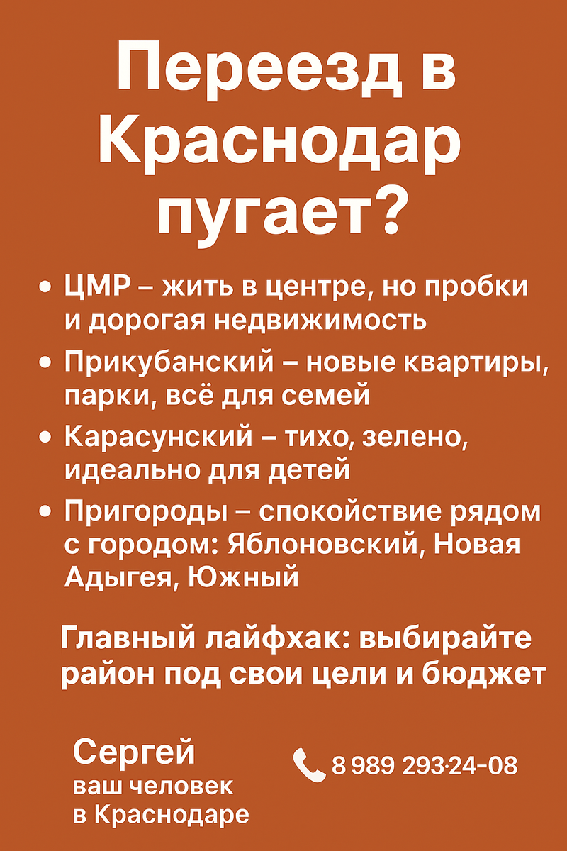 👉 Думаете о переезде в Краснодар? Напишите мне — помогу подобрать квартиру и район под ваши цели и бюджет.