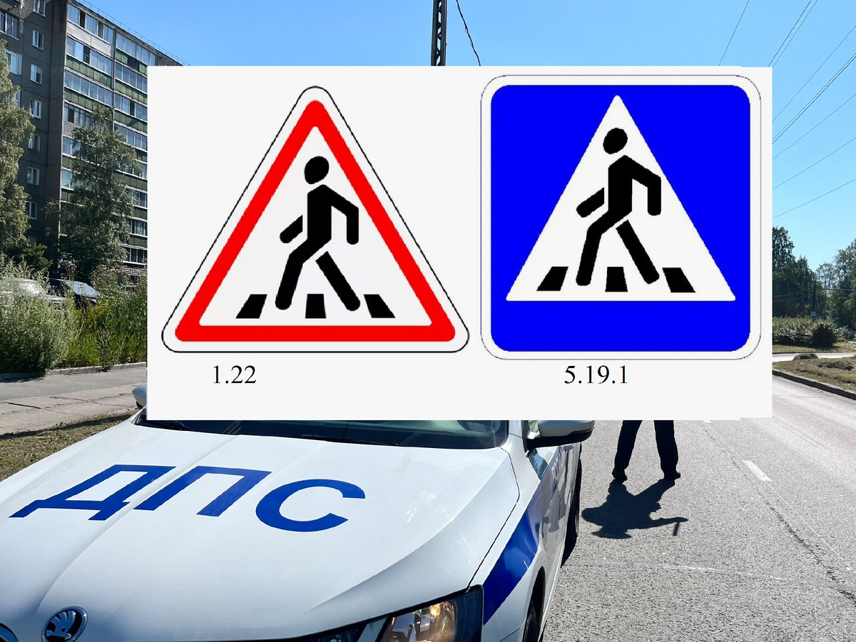 Наш канал в Телеграм "Автоюрист. Всё о ДПС" В ПДД РФ около 300 дорожных знаков, причём некоторые из них похожи друг на друга визуально, но имеют разные названия, но есть два знака, которые не только похожи друг на друга, но и имеют одинаковое название, такими дорожными знаками является дорожный знак 1.22 и 5.19.1 «Пешеходный переход». Несмотря на внешнее сходство и одинаковое название данные дорожные знаки различные и по своему значению и по своему предназначению, поэтому эти дорожные знаки водителям важно различать. Дорожный знак 1.22 «Пешеходный переход» является предупреждающим дорожным знаком, основное значение данного дорожного знака это предупреждение водителей о том, что впереди по ходу движения имеется пешеходный переход обозначенный дорожными знаками 5.19.1 и 5.19.2. Заметим, что установка данного дорожного знака вне населенного пункта обязательна во всех случаях, когда впереди есть пешеходный переход. А вот в населенном пункте его устанавливают перед первым нерегулируемым наз