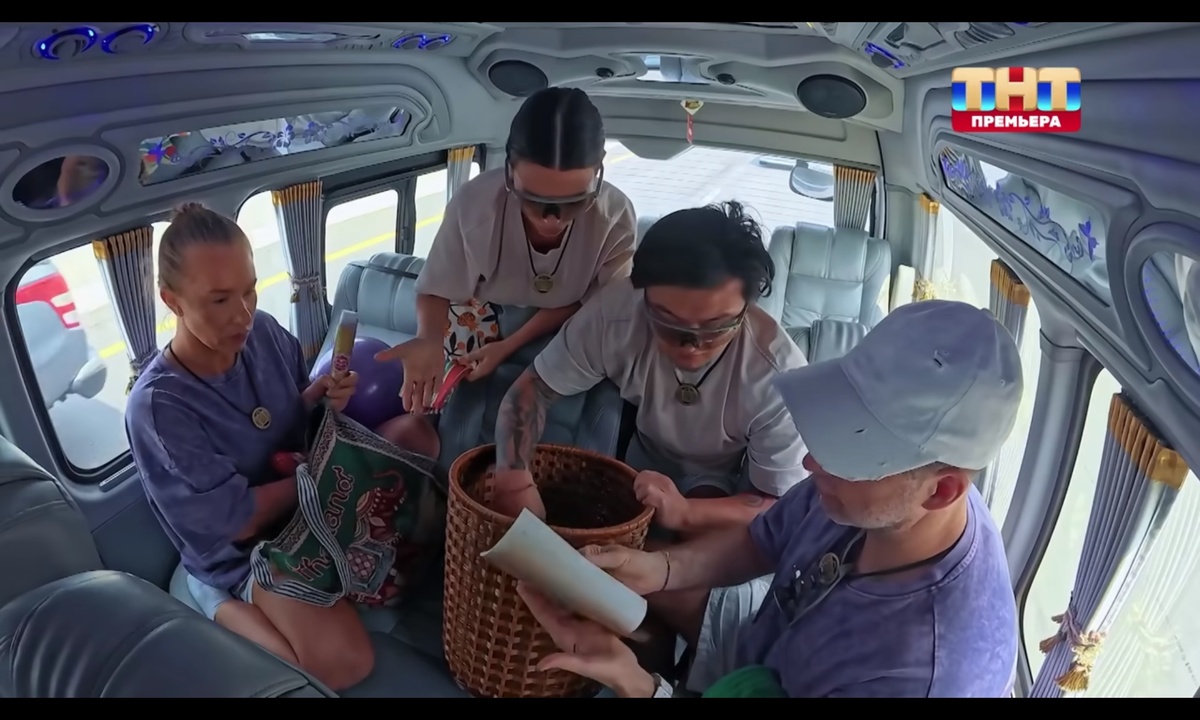 Здравствуйте, дорогие читатели! Игроки едут на большое испытание! А пока остановка на малые игры. Ехали по две пары также сообща проходили испытания, необходимо собраться на пляж сложив в сумку все вещи, которые до этого показали ведущие. На большом испытании пары носили кокосы в "обуви" из половинок кокоса, раскалывали их мачете, выливали "молоко" в колбу. Пальцы ног стерты в кровь, пальцы рук на удивление остались на месте, но у пары Хилькевичей досадная, очень обидная ошибка Маши, она разбила свою колбу открывая над ней кокос и вся жидкость вылилась, а её было уже много и они претендовали на место не ниже третьего, увы, они заняли последнее опасное место, когда уже ничего, практически ничего от пары не зависит. Хилькевичам оставалась одна надежда, что метку дадут кому то другому, но если бы она по прежнему была у Дзюбы/Лебедева то шанс был бы, но звезды сложились иначе и теперь метка у Кравченко/Кабак, а в этой паре Мария просто не может упустить возможность вернуть Хилькевичам