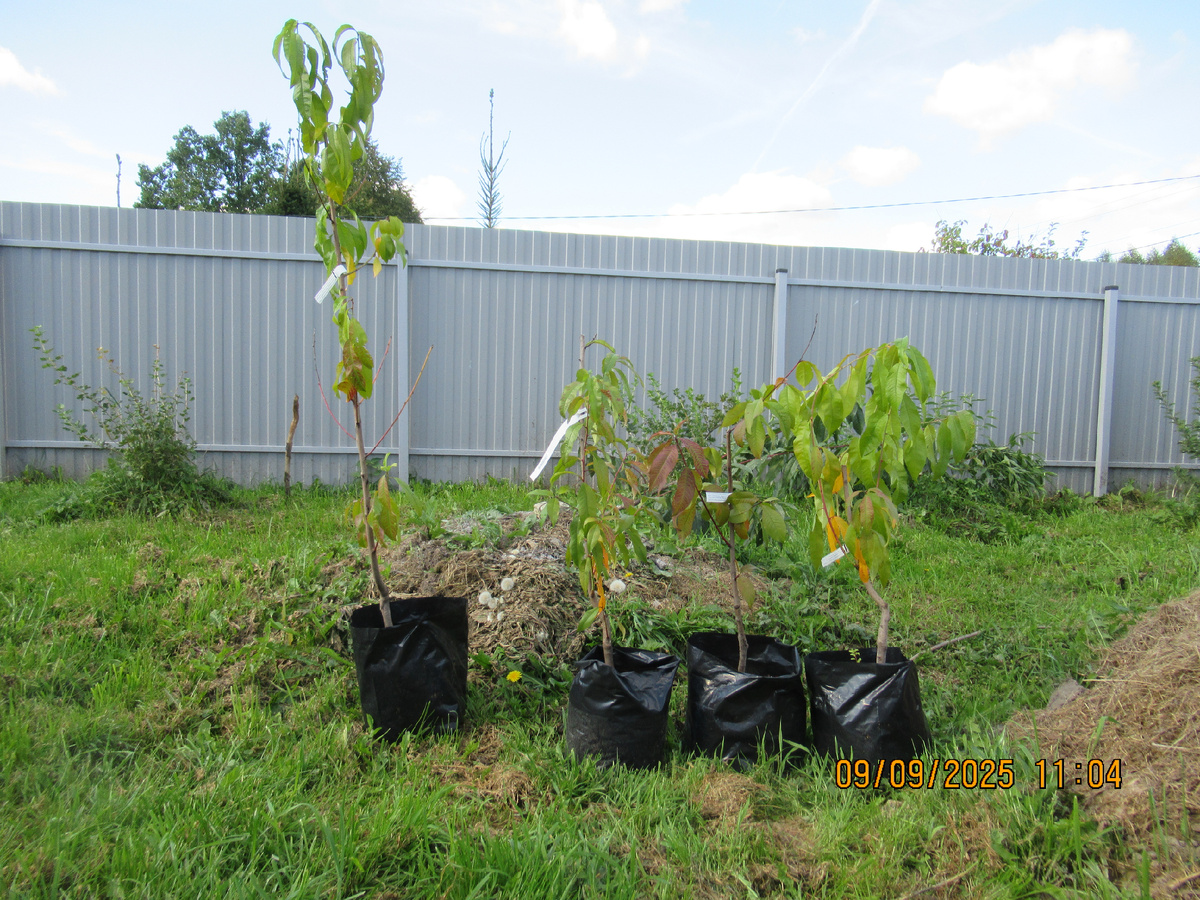 Нашёл два питомника в области, где есть районированные саженцы персиков. Ехать пришлось в другой район, 138 км, одна радость, что питомники практически рядом. Вот они. В одном питомнике куплены саженцы Золотая Москва и Гринсборо, ехал в основном за ними и Ред Хевен, до кучи. Саженцев персиков у них очень много, пообщался с хозяином- по реализации, покупают потихоньку, зимуют саженцы на улице, привиты на алычу почкой, своих плодоносящих деревьев нет, про посадку под 45 градусов и укрытие ничего не знает. Тему развивать собираются. Это радует. Буду следить. Ред Хевен у меня уже есть, купил ещё один для сравнения. Подвой торчит. Похож на алычу? В другом питомнике купил ещё одну Золотую Москву, ну раз по пути и заехал- надо купить. Больше хотел посмотреть, что это и кто это. Питомник занимается в основном цветами и используется, как площадка для продажи саженцев от других производителей. Саженцы маленькие, явно не южане. Их было три или четыре. Своего сада с персиками нет. Саженцы персик