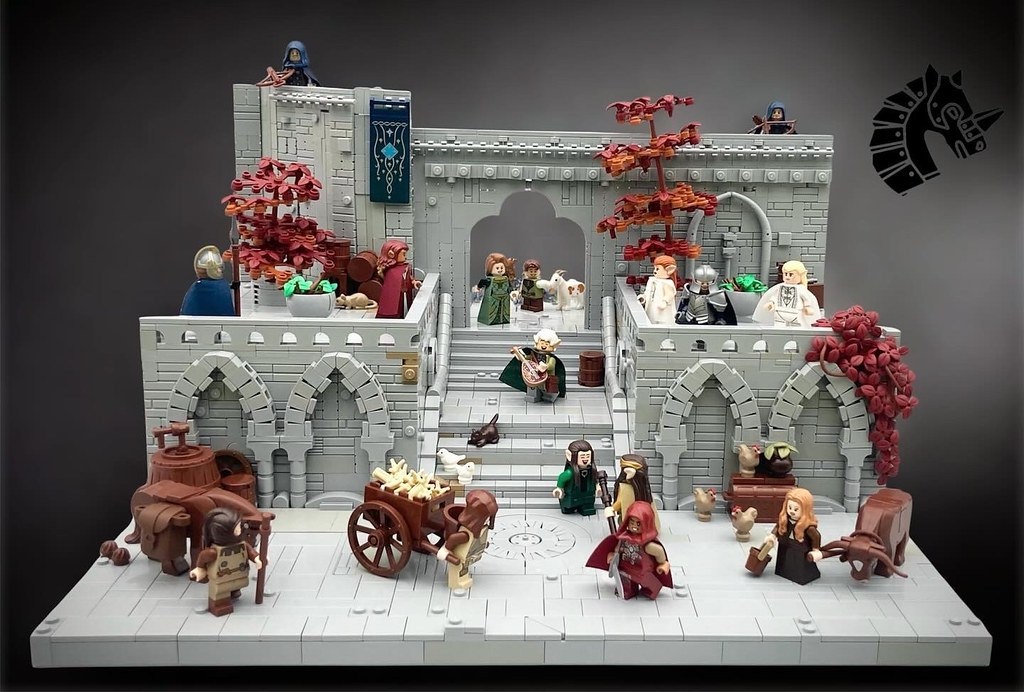 Новая глава в мире фэнтези-города Dandelume от T-86 🎵 Шведский строитель T-86 продолжает раскрывать историю своего фэнтезийного мира! Новая диорама представляет Брайндона Барда на ступенях Старого города с потрясающей детализацией: мозаика из плиток и склонов, арки из фар и игра контрастов между богатыми и бедными. Особенно круто смотрятся техники работы с серыми деталями — несмотря на монохромную палитру, сцена выглядит невероятно живо. Это уже третья год разработки вселенной Dandelume, и фанаты ждут продолжения! Источник: The Brothers Brick