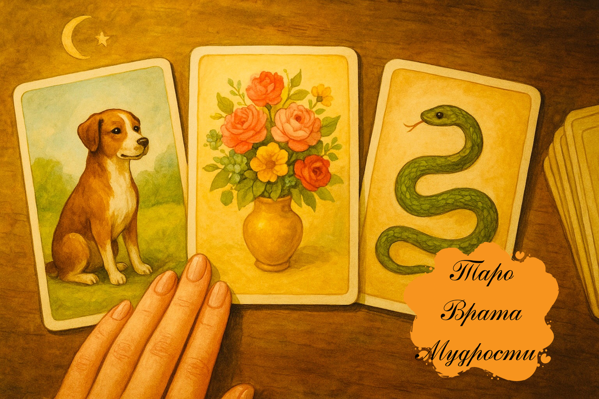 Но — вот Змея. И здесь энергетика усложняется. Змея в Ленорман всегда говорит о двусмысленности: о том, что не всё на поверхности. Это может быть соперница, завистница, человек с хитрым интересом. Как будто радость, которая к вам приходит, тут же привлекает внимание кого-то, кто не очень чист сердцем.