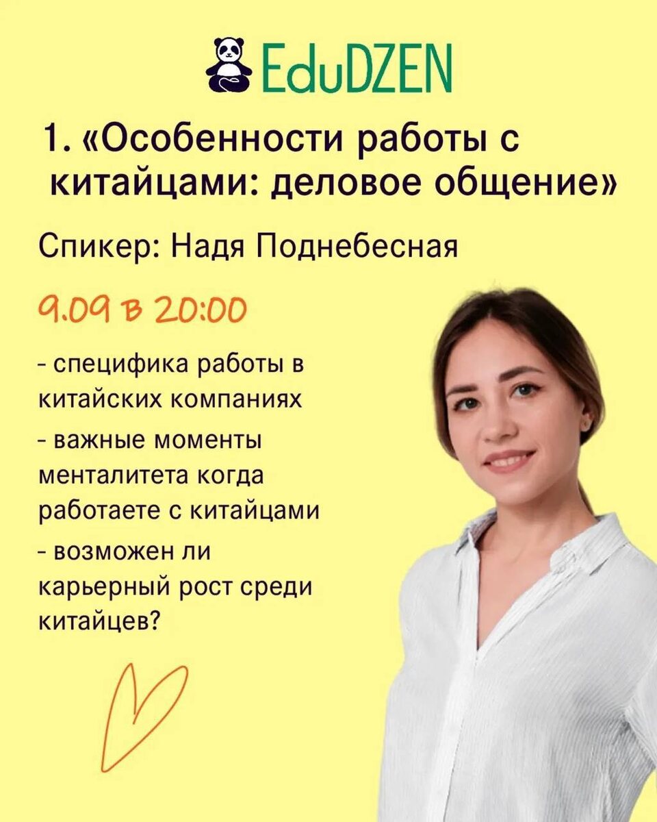 Уже сегодня в 20:00 по мск СТАРТУЕТ НАШ ОСЕННИЙ МАРАФОН с открытым лекциями от преподавателей нашей школы EduDZEN 🐼 Сегодня встречаемся с Надей Поднебесной! Что будет на лекции смотрите на картинке и видео ⬆️ ‼️ Лекция пройдет в ZOOM, поэтому не забудьте проверить его установку на устройстве. Ссылка будет ТУТ НА КАНАЛЕ за 1 час до начала До встречи ✨