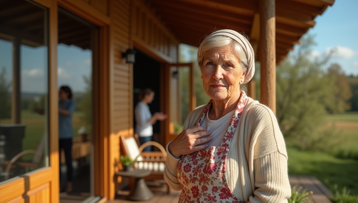 Она встала у края веранды, прислонилась к деревянной колонне. Пальцы её машинально теребили край фартука. Тот самый, с цветочками, который она шила сама, когда только внуки родились. Её дочь, её сын, её внучки — всё, что у неё осталось после смерти мужа. А теперь и это начинало рушиться.