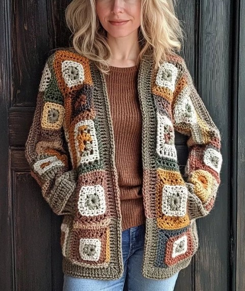 Классные квадратные мотивы для осенних кардиганов с бесплатными схемами!
