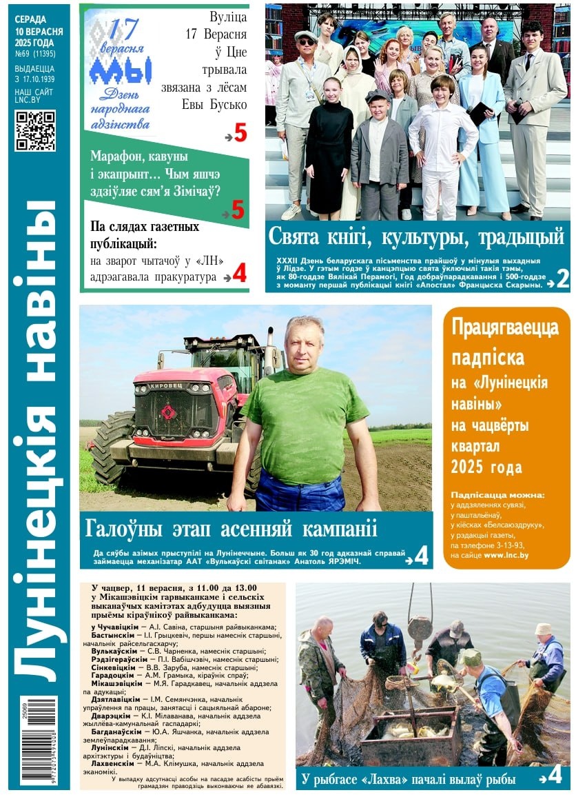 Основные темы номера газеты "Лунінецкія навіны" за 10 сентября.