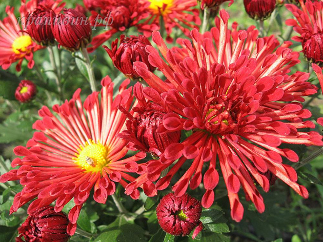Хризантема «Темные реснички» – это корейский среднерослый сорт с махровыми ложечковидными цветками диаметром 8-12 см, цвет которых меняется от серебристо-белых трубочек до кирпично-красных, а при полном раскрытии – до оранжево-красных. Куст достигает высоты 60-70 см, цветет с августа до заморозков и хорошо зимует в открытом грунте. Для успешного роста требует солнечного места с рыхлой, питательной и хорошо дренированной почвой.