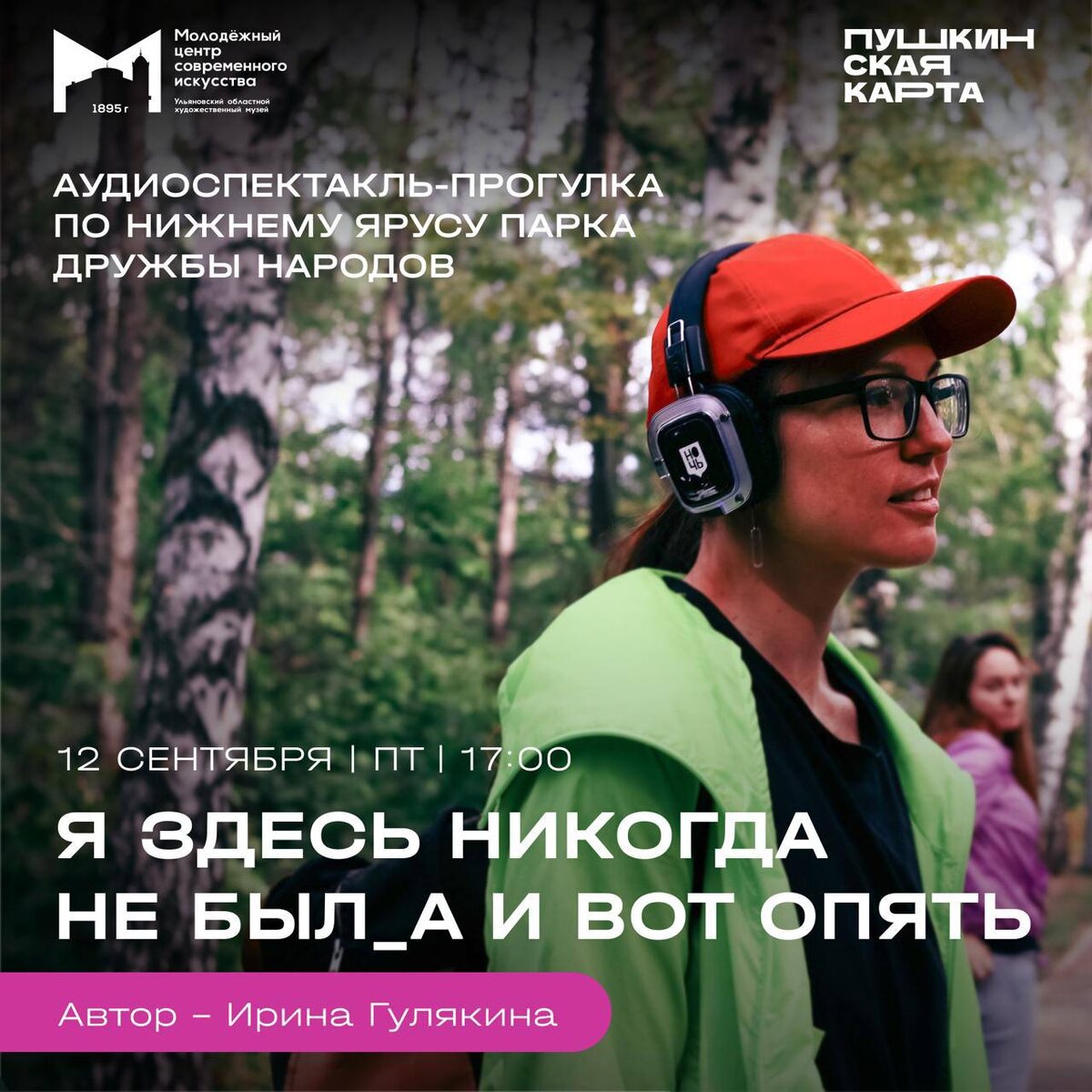 Аудиоспектакль-прогулка по парку Дружбы народов «Я здесь никогда не был_а и вот опять» 🗓️12 сентября, 17:00 📍МЦСИ Когда-то Парк Дружбы народов был местом, где на Волжском косогоре соседствовали пятнадцать архитектурно-ландшафтных ансамблей республик. Сегодня от них остались лишь фрагменты, но у парка все еще есть своя особая атмосфера, где соединяются воспоминания, легенды и звуки города. Художница Ирина Гулякина (Москва) – автор аудио-спектакля «Я здесь никогда не был_а и вот опять» собрала голоса, шумы, фрагменты текстов Карамзина, Толстого, Шкловского, выдержки из исторических документов и интернет-историй о парке в единый аудиоспектакль «Я здесь никогда не был_а и вот опять». В этот день у вас будет редкая возможность пройти маршрут вместе с автором и поговорить с ней: о парке, времени и переменах. Мы наденем наушники, возьмем карту и отправимся в часовое путешествие, где прошлое будет шаг за шагом встречаться с настоящим. Билеты 🎟️ #12сентября25