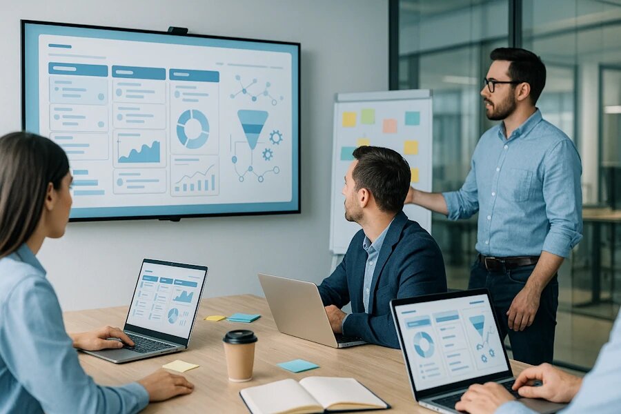 Раз в 2 недели — совет владельцев процессов: обсуждаем метрики, эскалации, бэклог улучшений. Ежемесячно — релизный цикл маленьких изменений: новые поля, отчёты, роботы. Раз в квартал — аудит воронки и качества данных, ретро с командой продаж и маркетинга. Так вы закрепляете внедрение Bitrix24 в операционной модели компании.