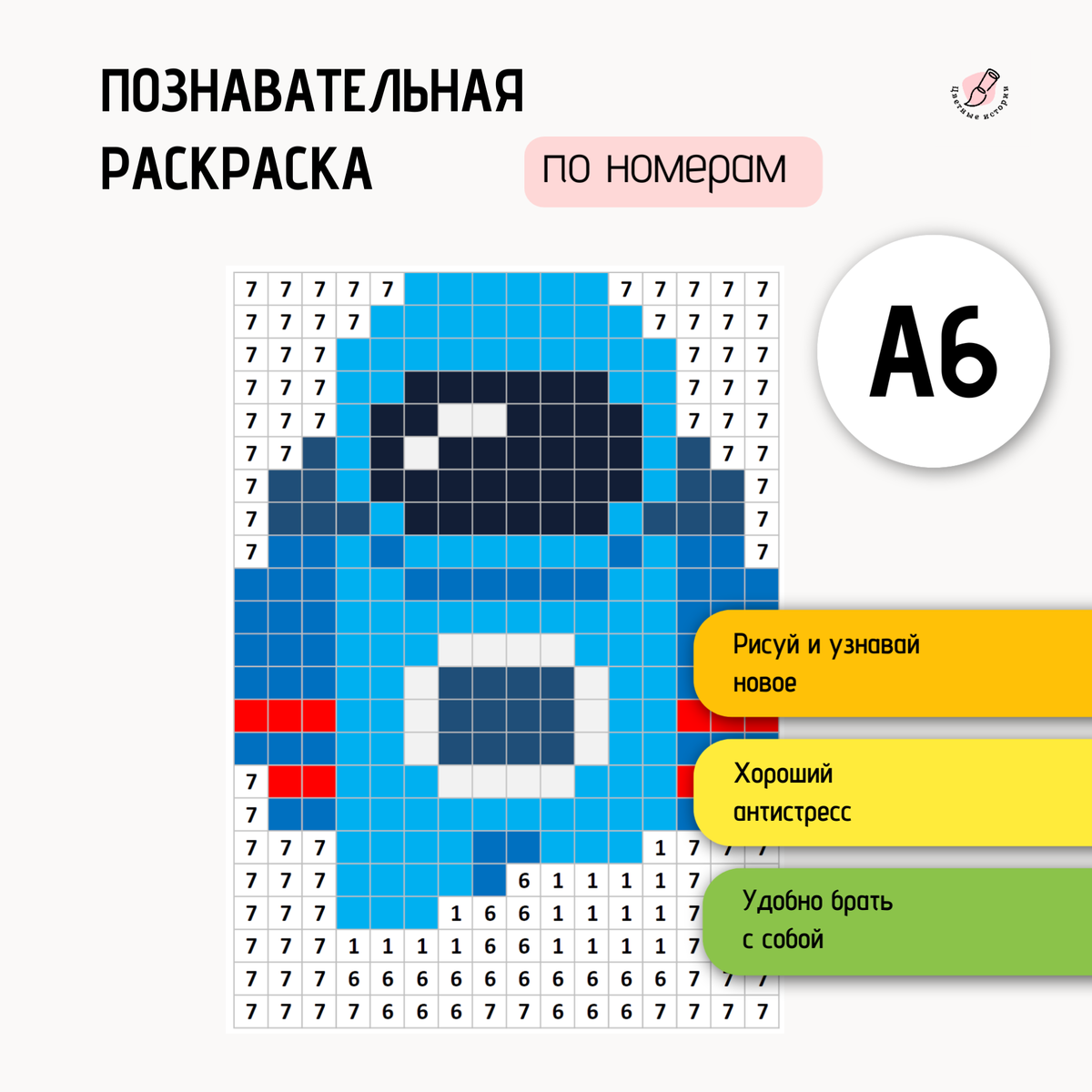 Рады сообщить вам, что у нас появилась новая линейка товаров - раскраски по номерам! Мы решили не ограничиваться наборами для вышивки и пойти еще дальше. Поэтому создали для вас еще и раскраски по клеточкам на базе наших дизайнов. Раскраска по номерам по клеткам для взрослых — это отличный способ расслабиться и провести время с пользой. Маленькие раскраски формата А6 (10х15 см) идеально подойдут для тех, кто любит раскрашивать мелкие детали и хочет узнать что-то новое. Особенности: Познавательный контент: на одной стороне листа — картинка для раскрашивания по номерам, на другой — интересный факт про изображённый объект. Это позволяет не только расслабиться, но и расширить свои знания. Компактность: маленький размер раскрасок (А6) позволяет взять их с собой в дорогу, положить в маленькую сумку или рюкзак. Они не займут много места и станут отличным способом провести время в пути. Рекомендации по использованию: для раскрашивания лучше всего использовать гелевые ручки или цветные каранд