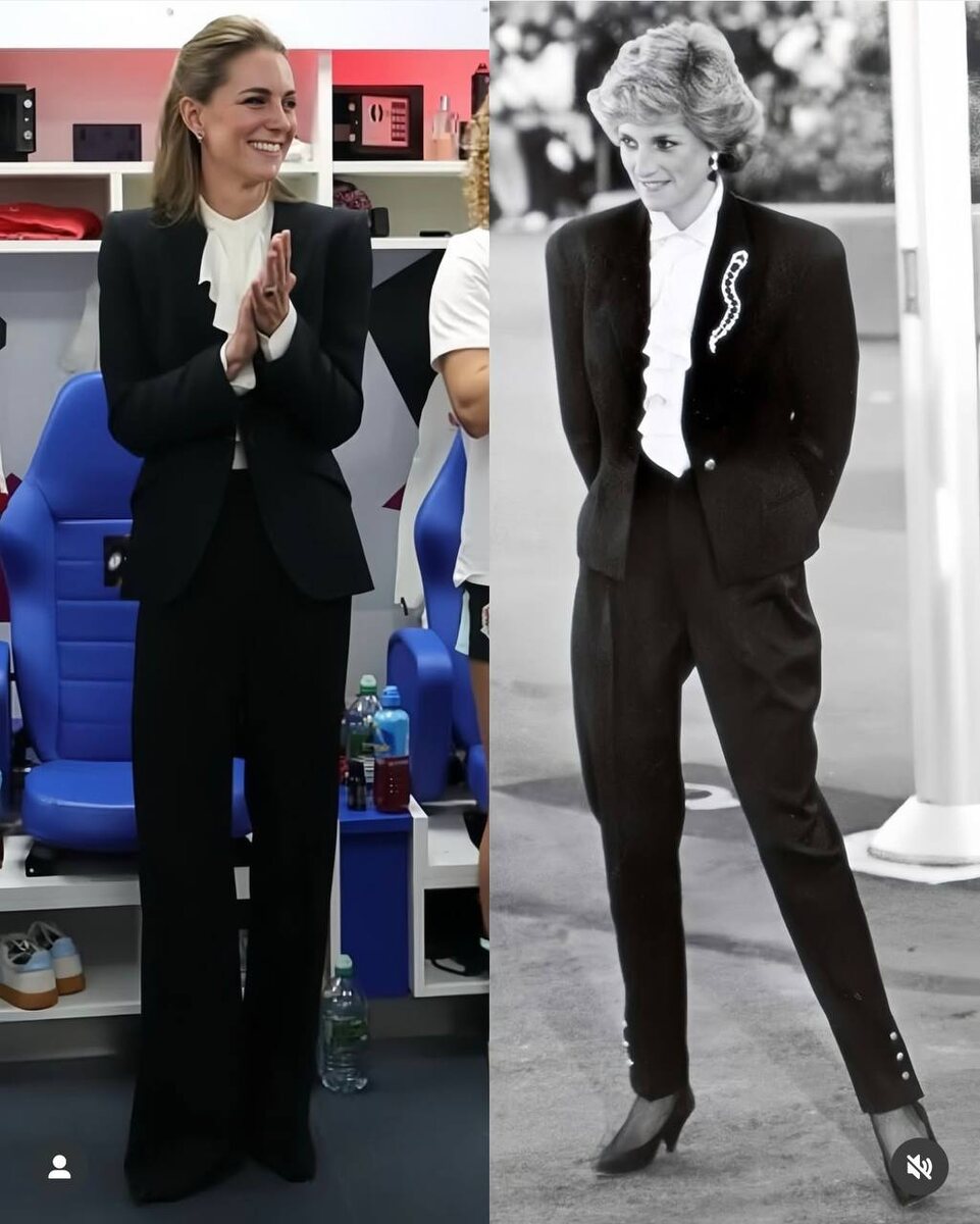 В сети активно сравнивают свежий выход принцессы Кэтрин на чемпионате мира по регби среди женщин с архивным образом принцессы Уэльской Дианы. Еще один фэшн-реверанс свекрови или совпадение во вкусах, как считаете?